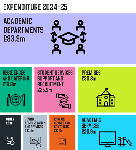 This covers costs incurred by various central administration teams including Finance, Legal, Human Resources, the Principal's Office and Strategic Planning. These teams play a key role in ensuring the effective organisation and management of the University.