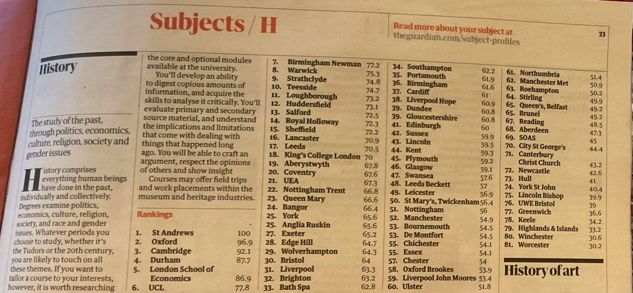 14th in the Guardian University Guide 2026